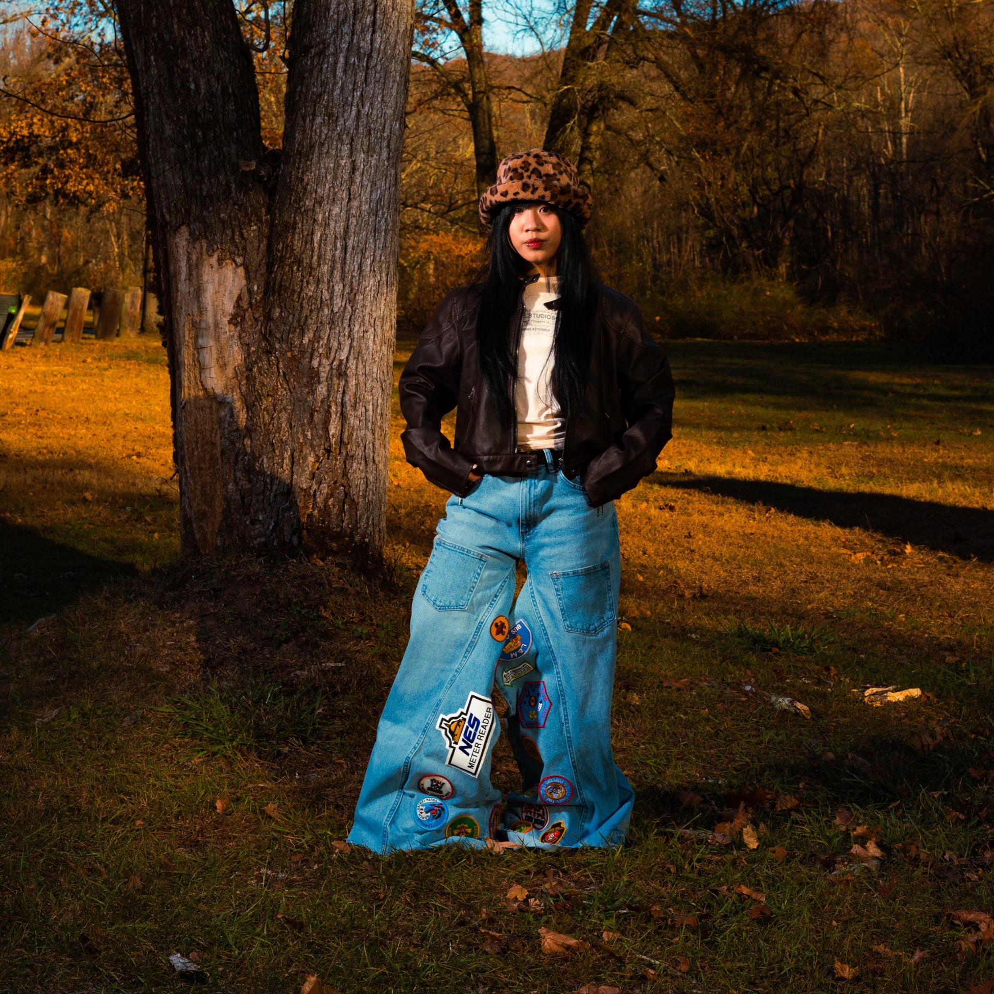 EACH PAIR OF DENIM WILL BE SEWN WITH DIFFERENT PATCHES.