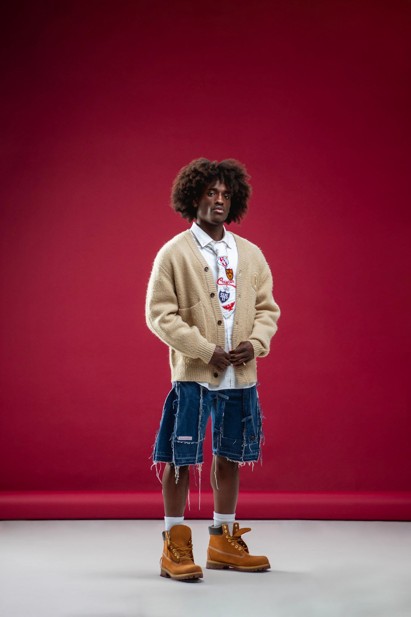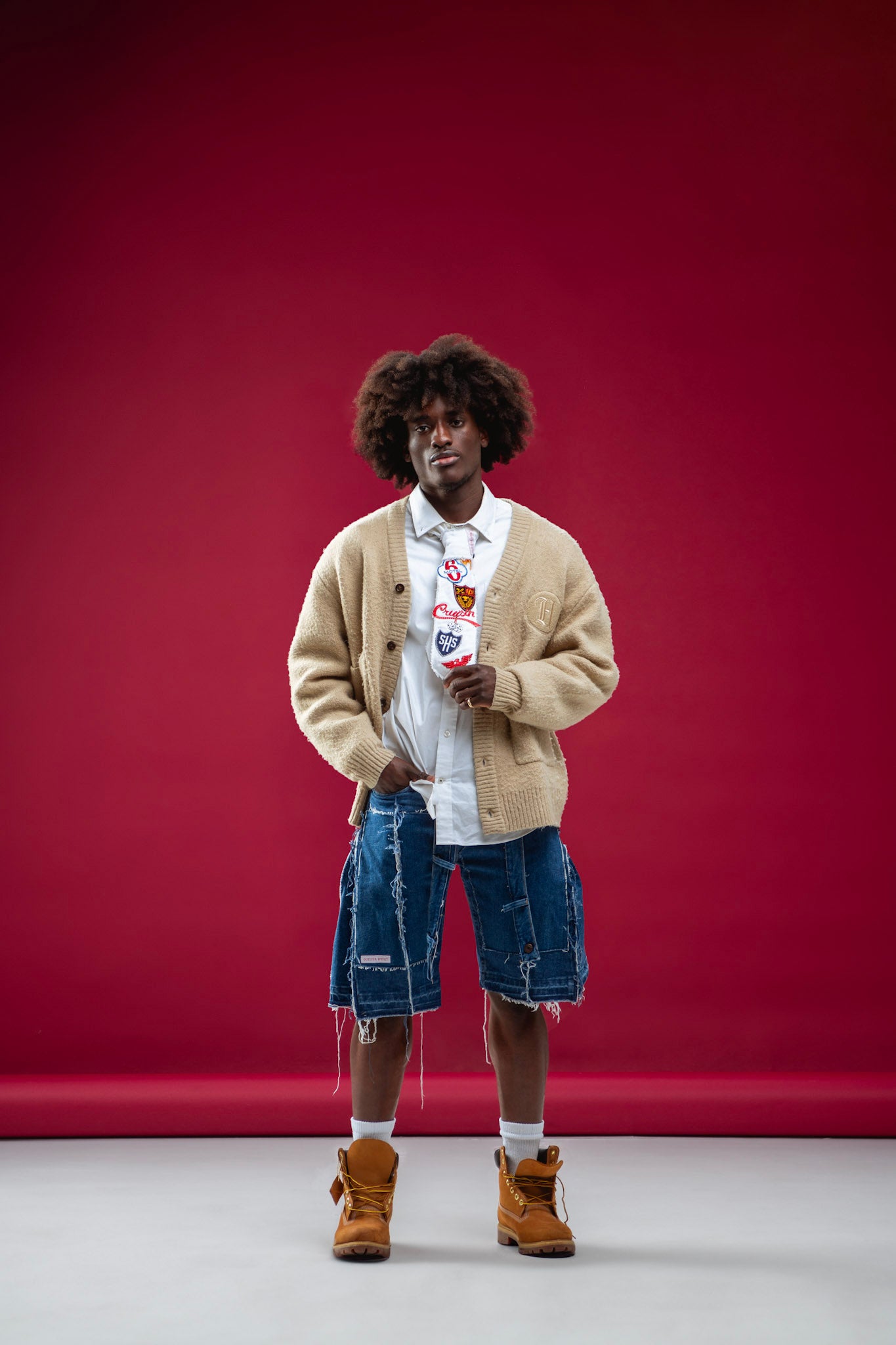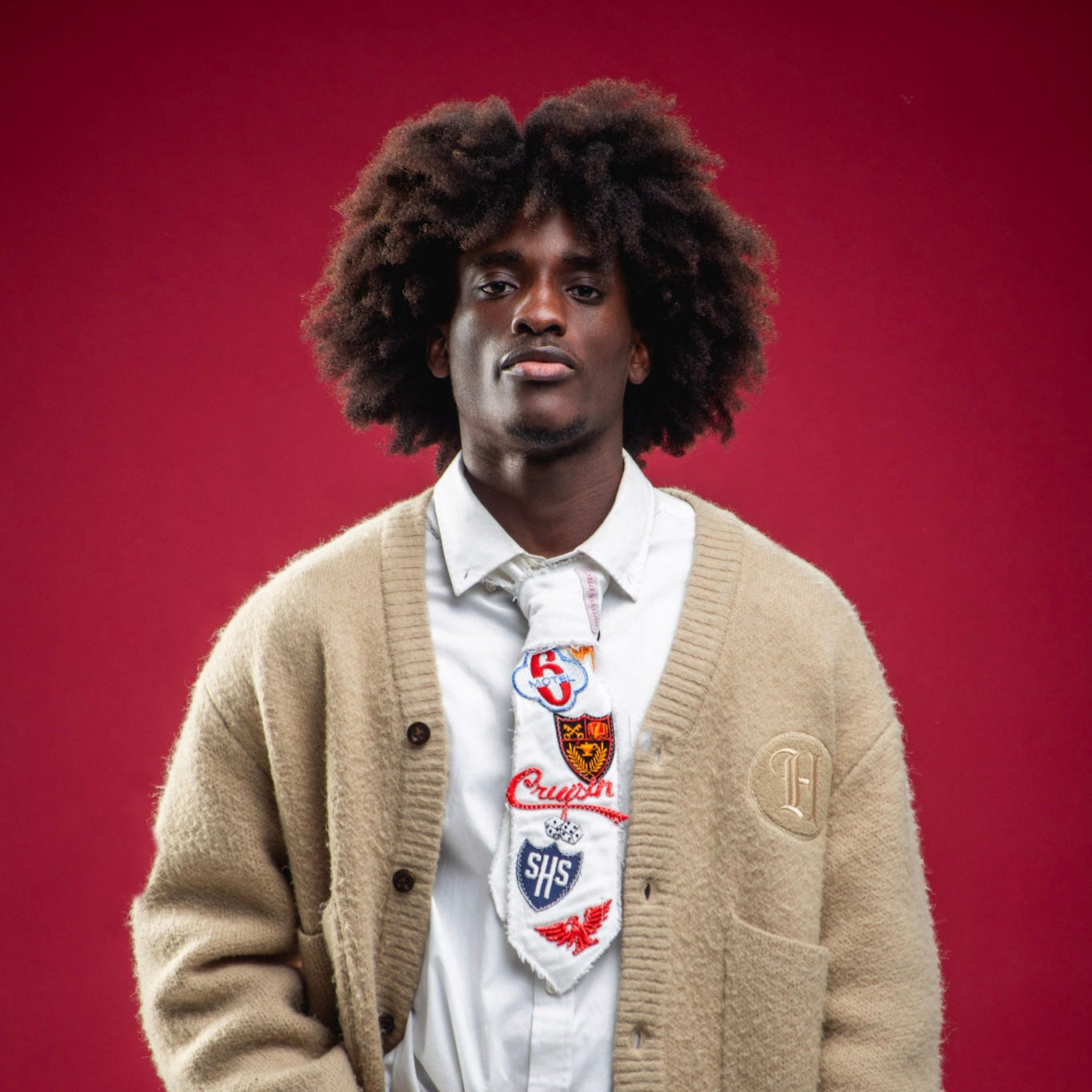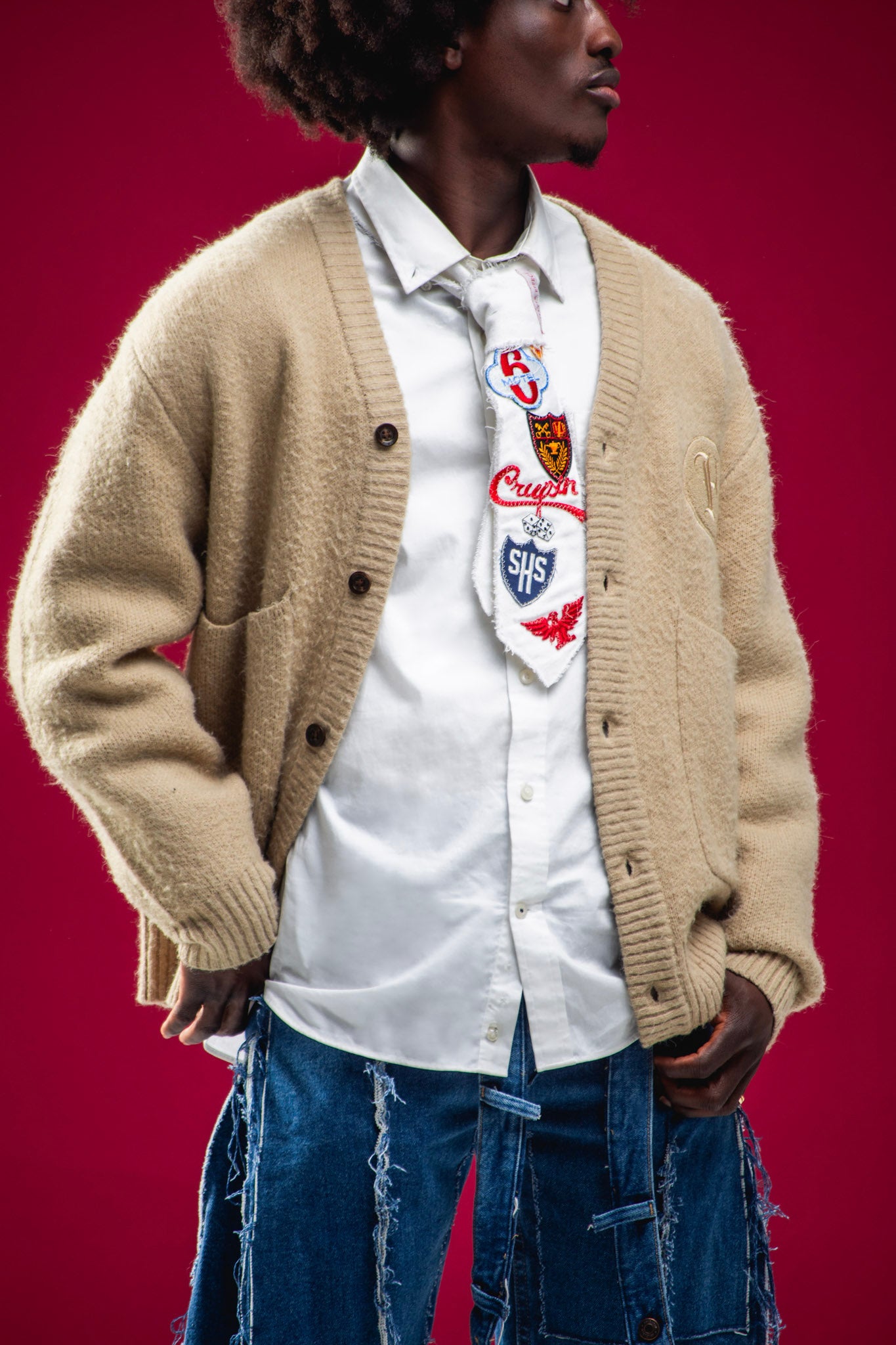 This tie would go perfectly with any outfit you have on. This tie is designed to be distressed and fit any neck. EACH TIE WILL BE SEWED WITH DIFFERENT PATCHES